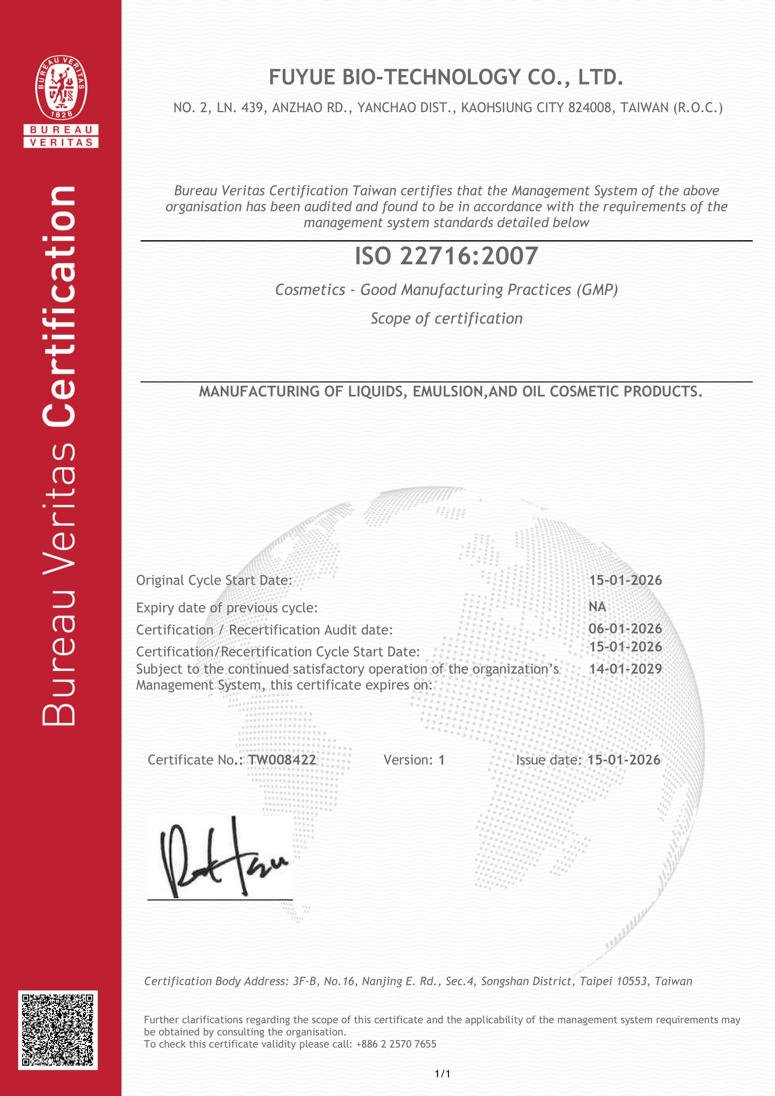 ISO 22716 CERTIFICATION